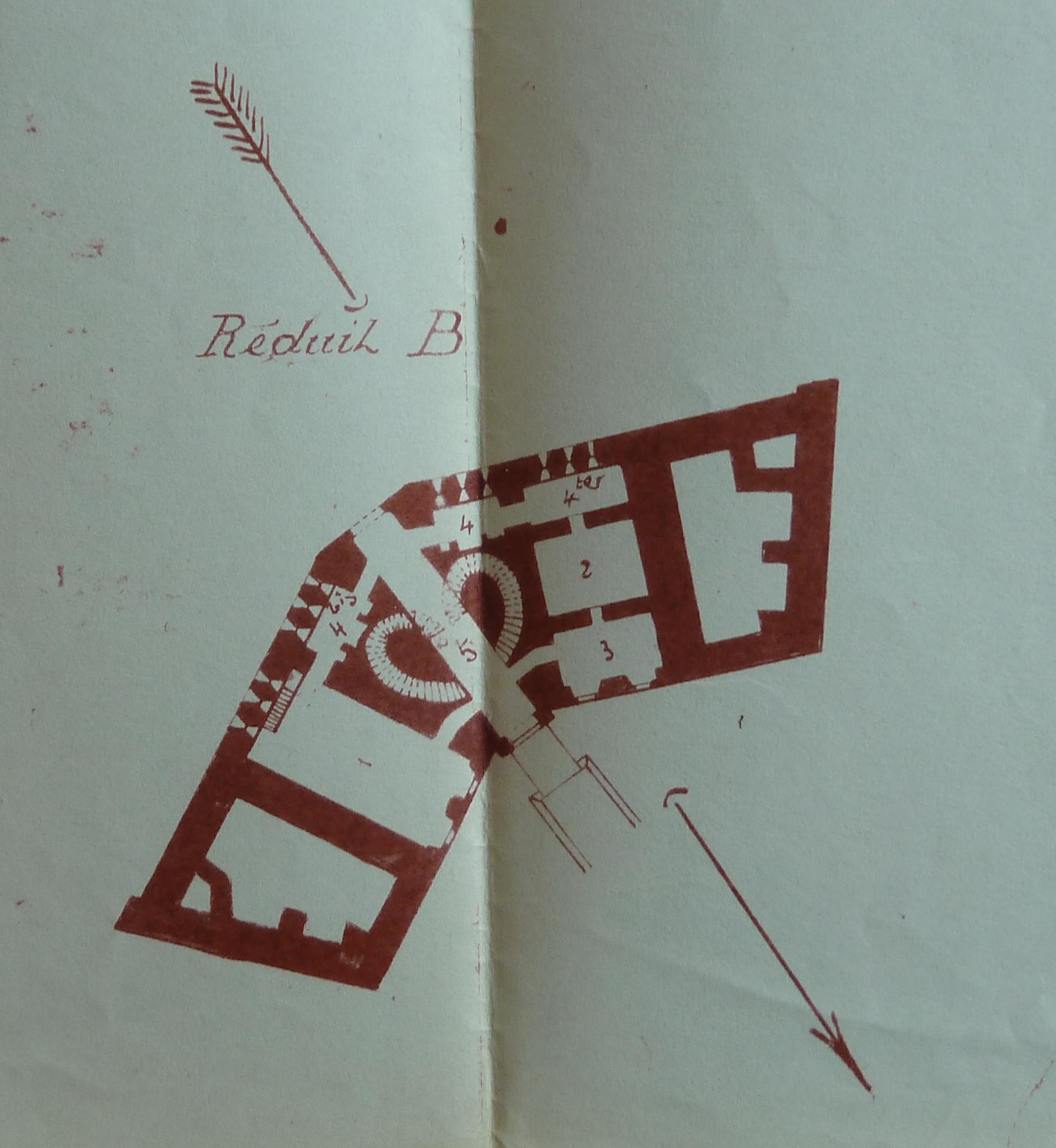 Service historique de la Défense, département Armée de Terre, Vincennes. Archives du Génie ; sous-série 3V, inspection du génie : 3 V 769, Commission de déclassement et d'aliénation d'ouvrages anciens, 1946-1947. Belle-Île, plan des casemates de contrescarpe et des réduits B et G.