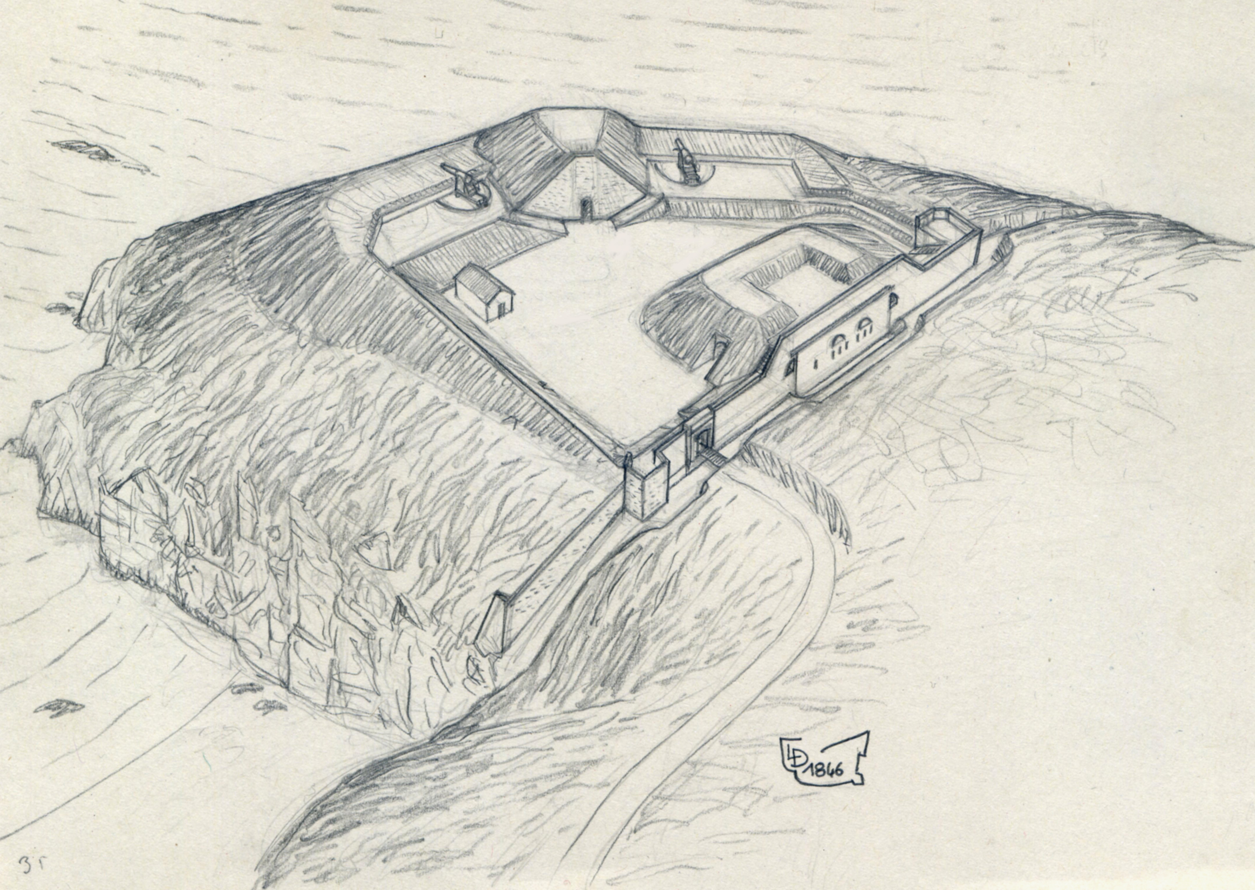 Le Palais, batterie de Ramonette, évocation vers 1880, par Lionel Duigou.Immatriculation