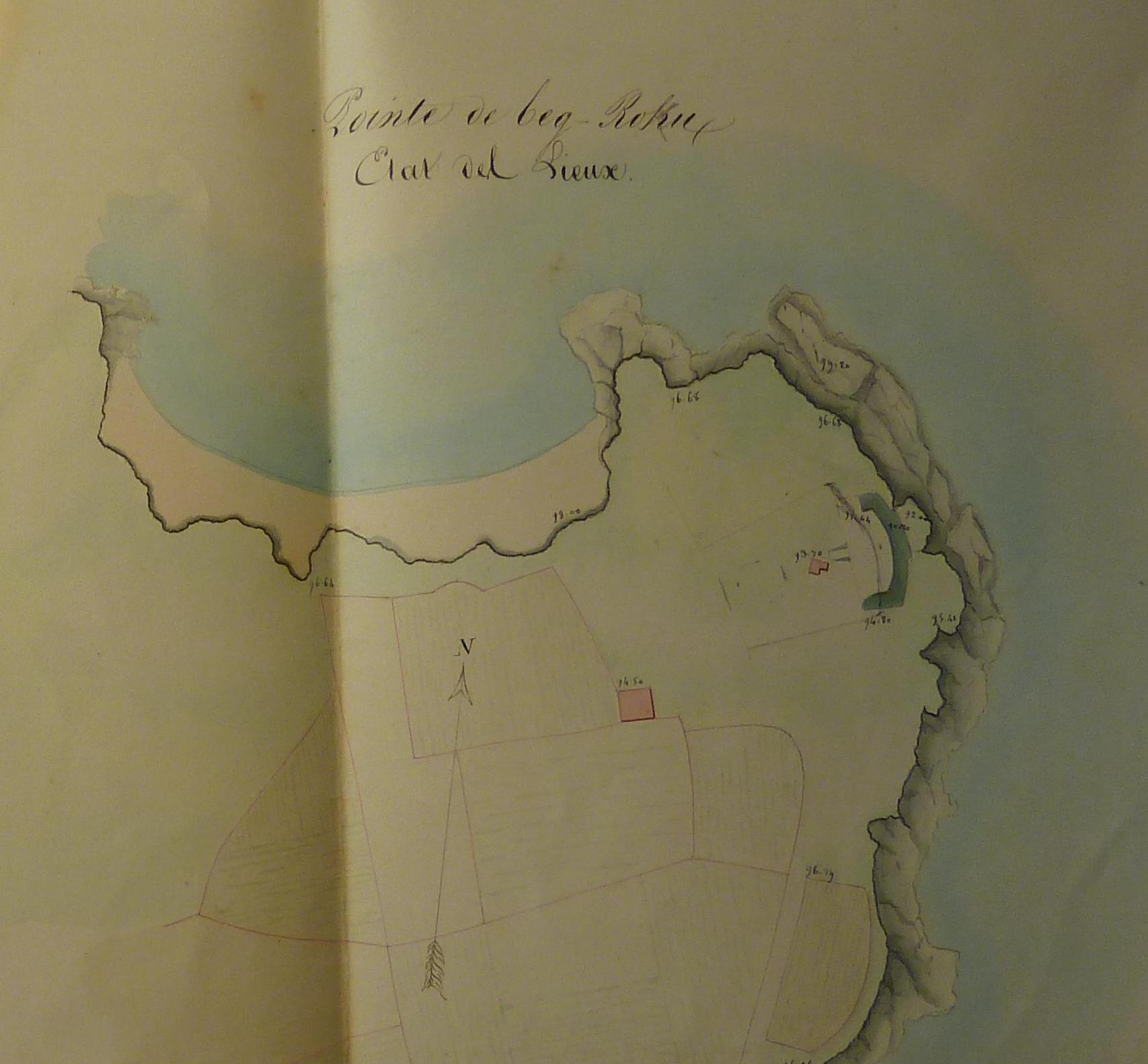 Service historique de la Défense, département Armée de Terre, Vincennes. Archives du Génie ; Article 8, Places françaises et d'Algérie : 1 VH 1518, Place de Quiberon, projets et dépenses annuels, 1847-1874. Direction du Génie de Nantes, Place de Quiberon, feuille des projets pour 1847, batteries de Beg Rohu et de Beg Quilvi, 12 avril 1847.