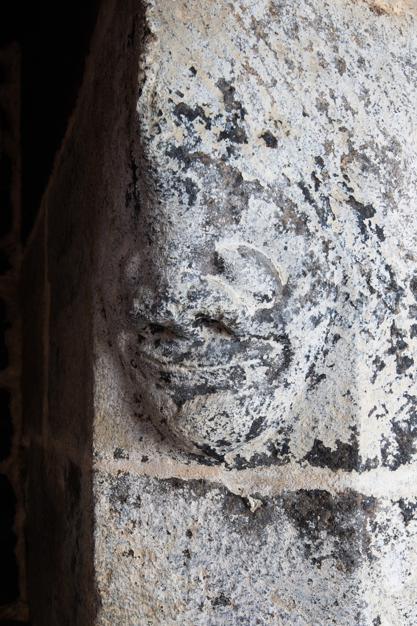 Logis seigneurial, rez-de-chaussée, détail figure sculptéeImmatriculation