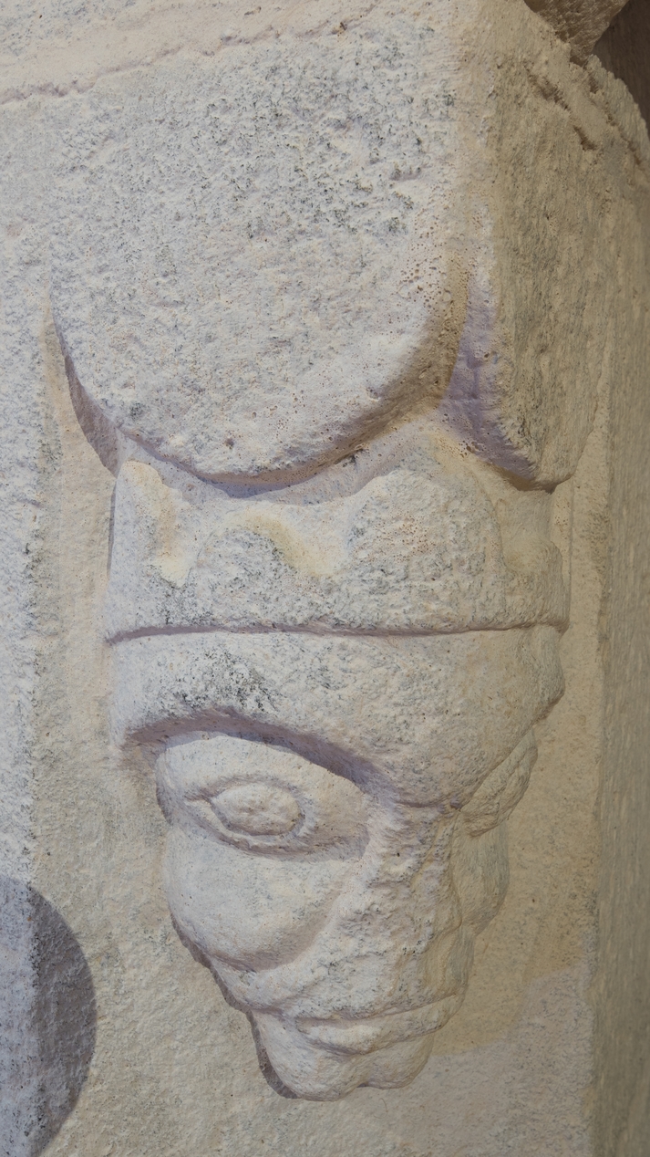Logis seigneurial, chambre au-dessus du passage voûté, détail de sculpture de la cheminéeImmatriculation