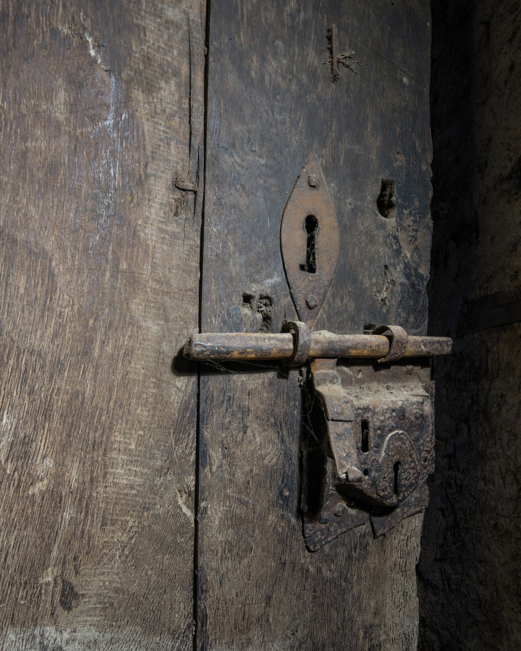 Combles. Porte de la tour d'escalier. Détail du loquet et de la serrureImmatriculation