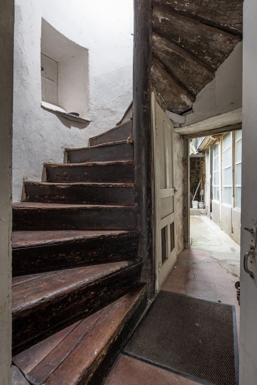 Tour d'escalier ouverte sur la courette arrière. Vue intérieure prise du rez-de-chausséeImmatriculation