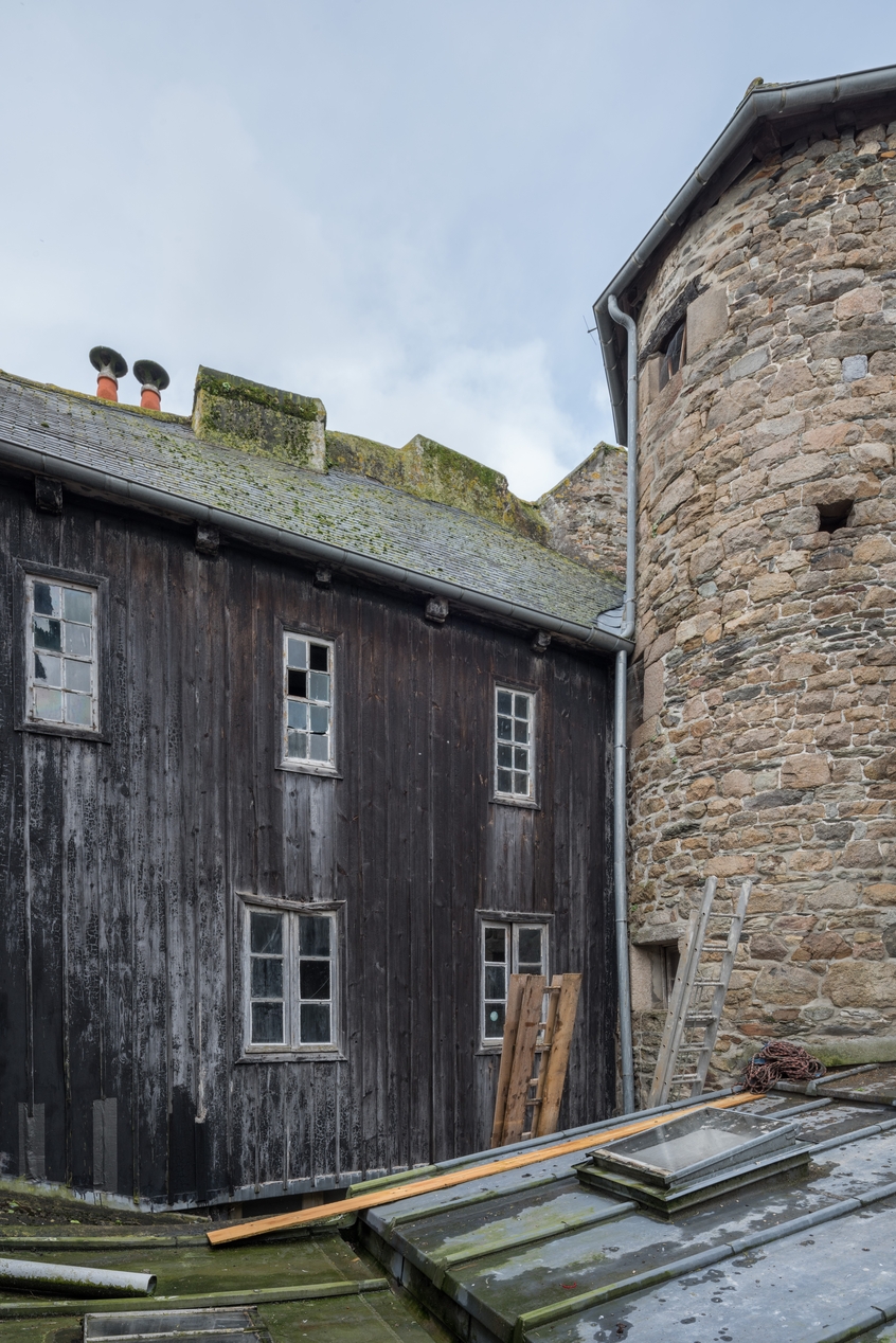 Tour d'escalier et logement secondaire en ossature et bardage bois construit en retour d'équerre de la maison principaleImmatriculation