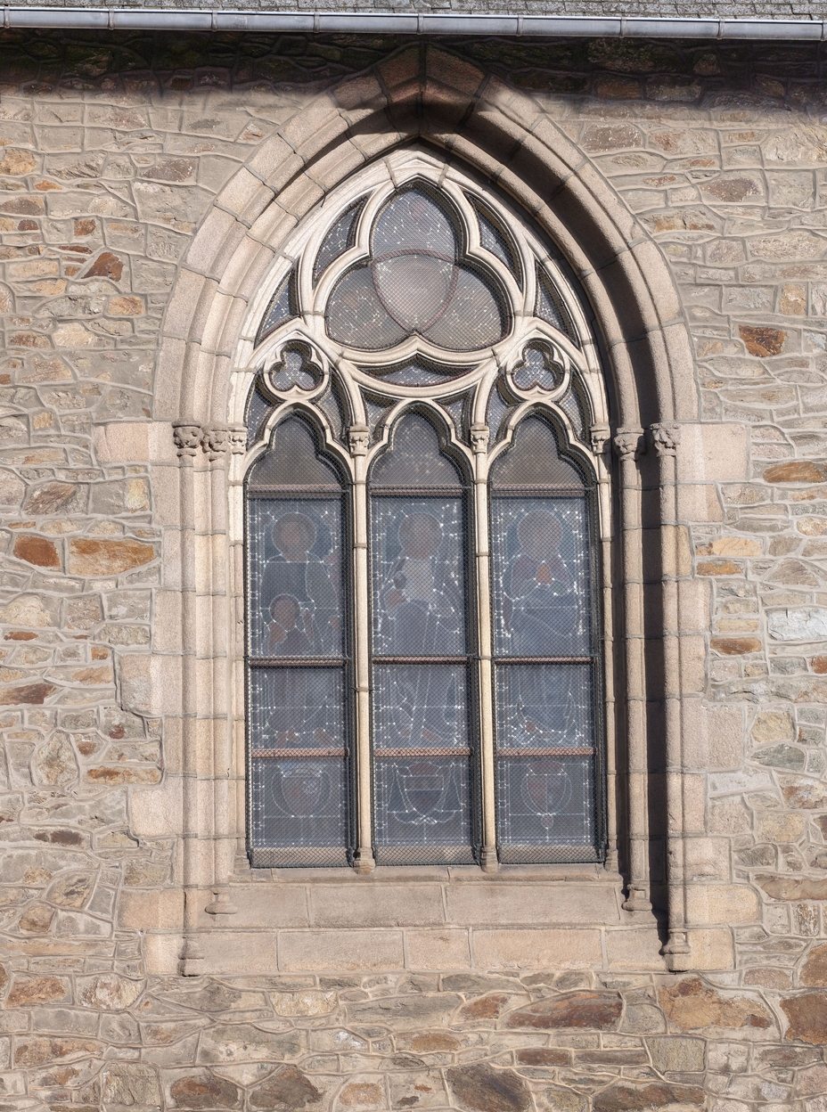 Chapelle Sainte Marie-Madeleine. Mur sud. Détail d'une baie dont le réseau a été refait au 19e siècleImmatriculation