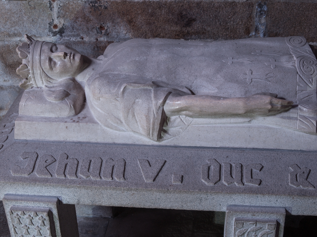 Tréguier : cathédrale Saint-Tugdual, chapelle du Duc, détail du tombeau et gisant de Jean V sculptés par Armel BeaufilsImmatriculation