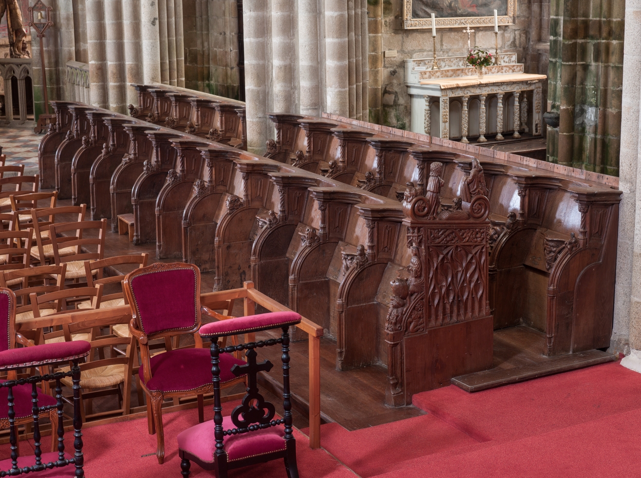 Chœur, détail de l'ensemble de 48 stalles (oeuvre de Gérard Dru et Tugdual Kergus, 1508–1511)Immatriculation