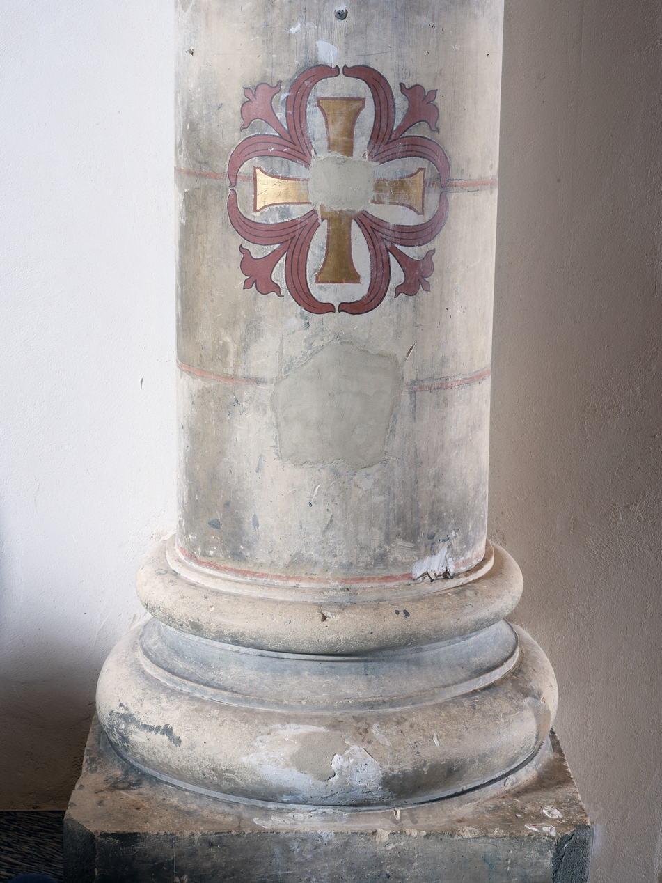 Tréguier, place de la République : chapelle du Petit Séminaire aujourd'hui Théâtre de l'Arche, détail de l'un des piliers, peinture muraleImmatriculation