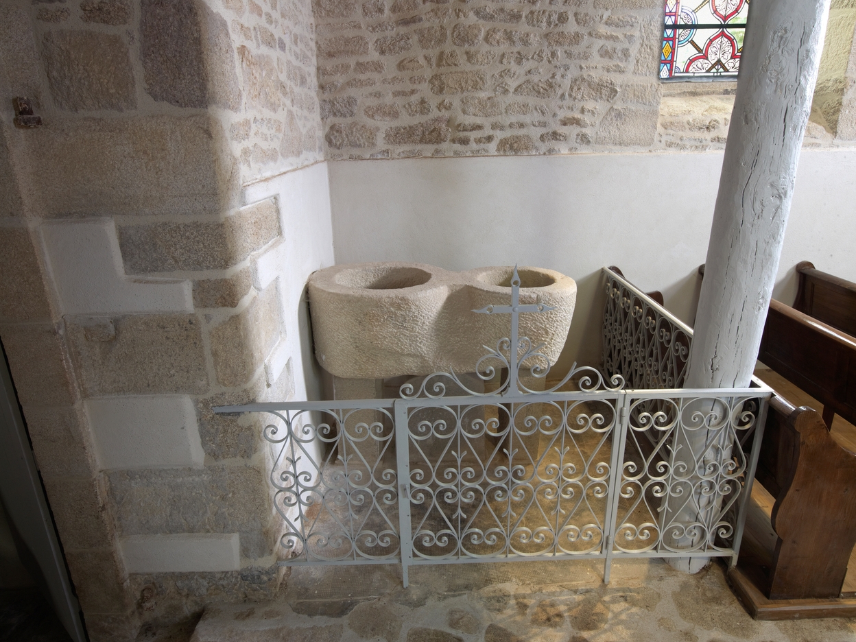 Fonds baptismaux situés au nord-ouest de la nef.Immatriculation