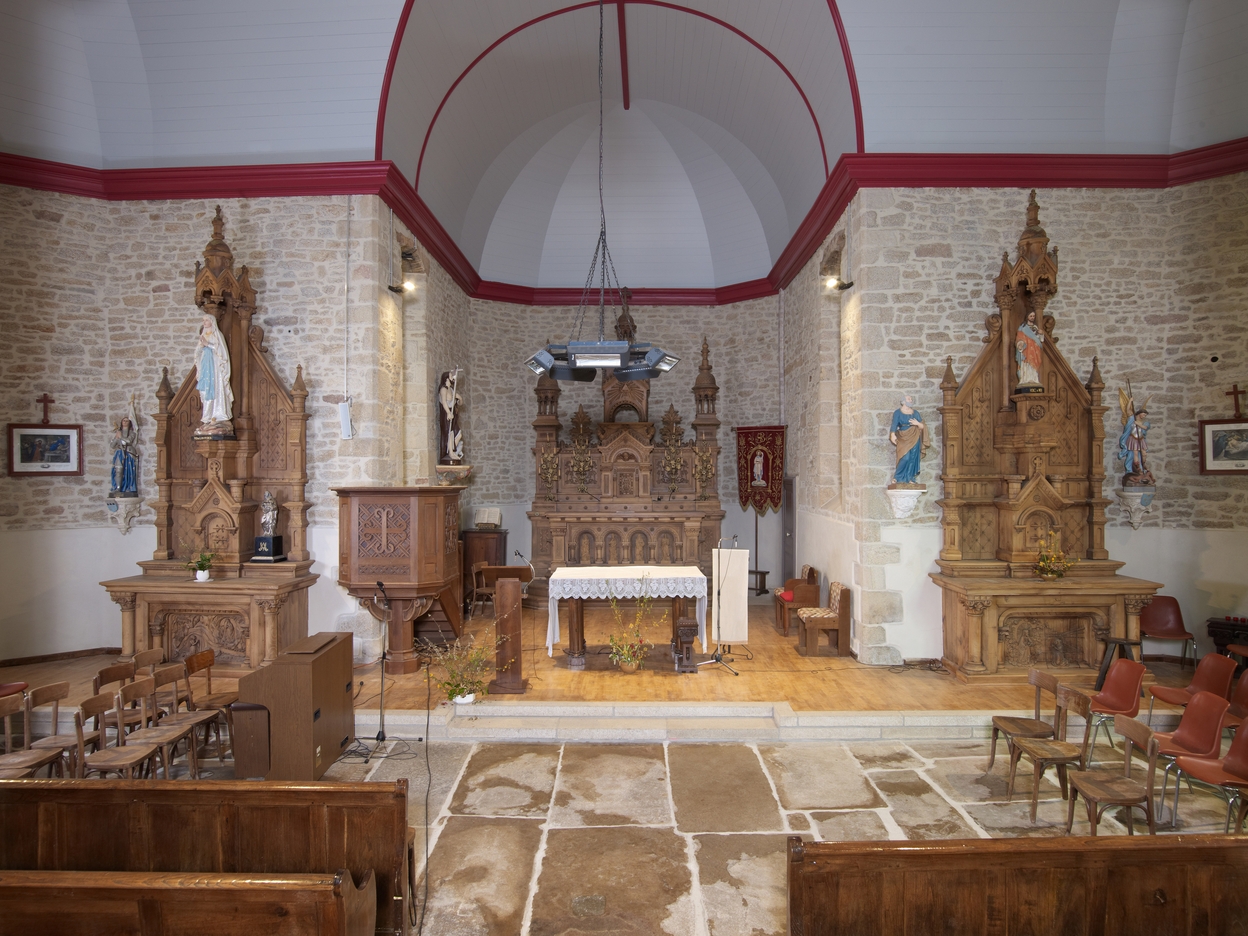 Vue du chevet et des transepts nord et sud depuis le choeur de l'église.Immatriculation