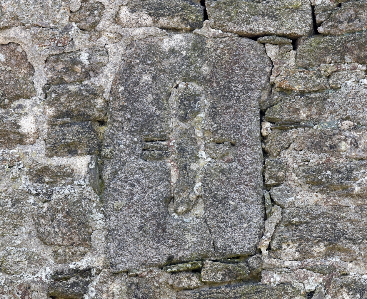 Détail d'un ancien jour en forme de meutrière, façade postéieure.Immatriculation