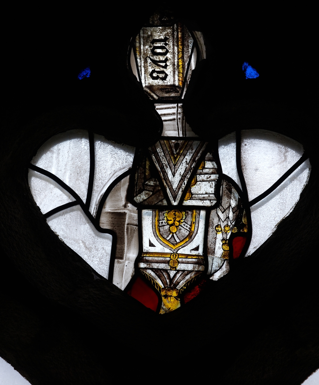 Fragments de vitraux anciens de la baie ouestImmatriculation