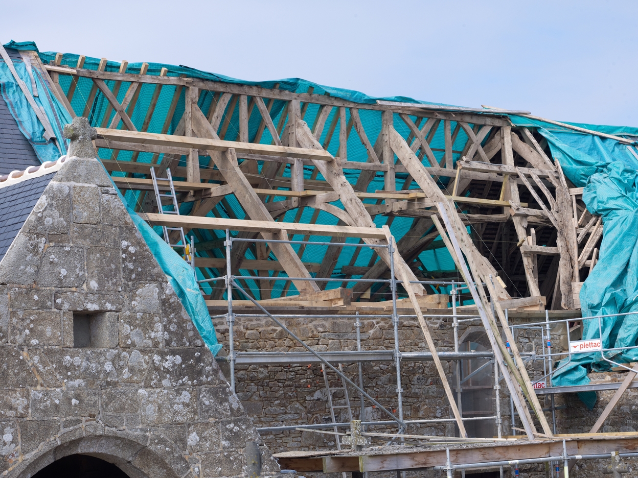 Charpente de la nef en cours de restauration, juillet 2018Immatriculation