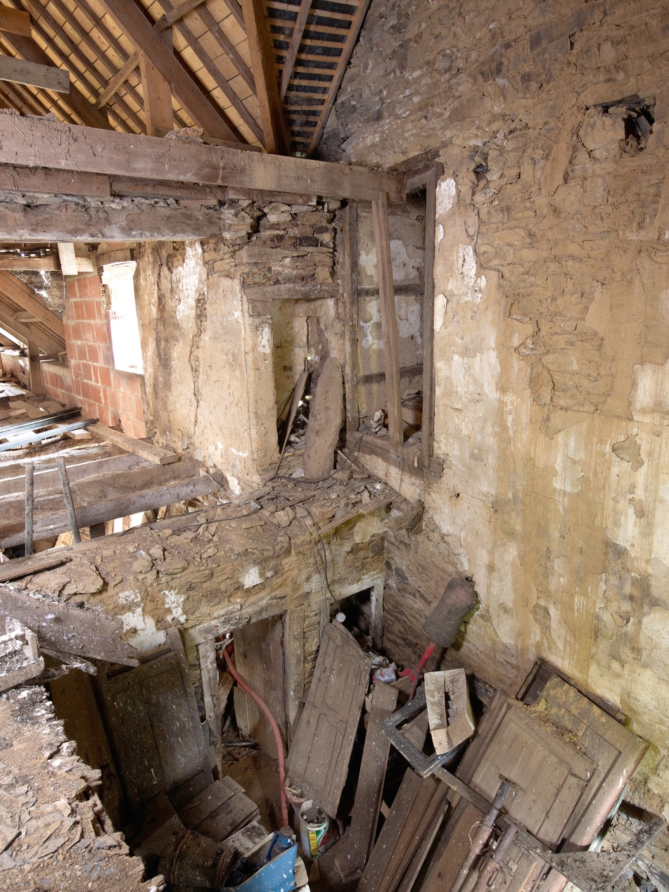 Logis secondaire construit en alignement du logis principal. Vue de l'étage avec latrine et porte de communicationImmatriculation