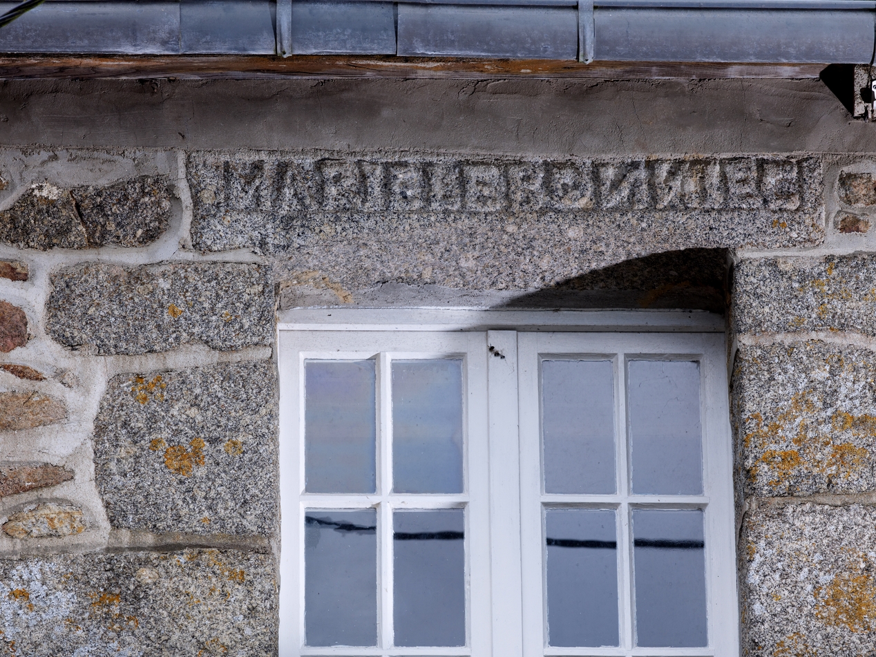 Prat, Goaz an Floc'h : logis de ferme, inscription sur l'un des linteaux de fenêtre "MARIE LE BONNIEC"Immatriculation