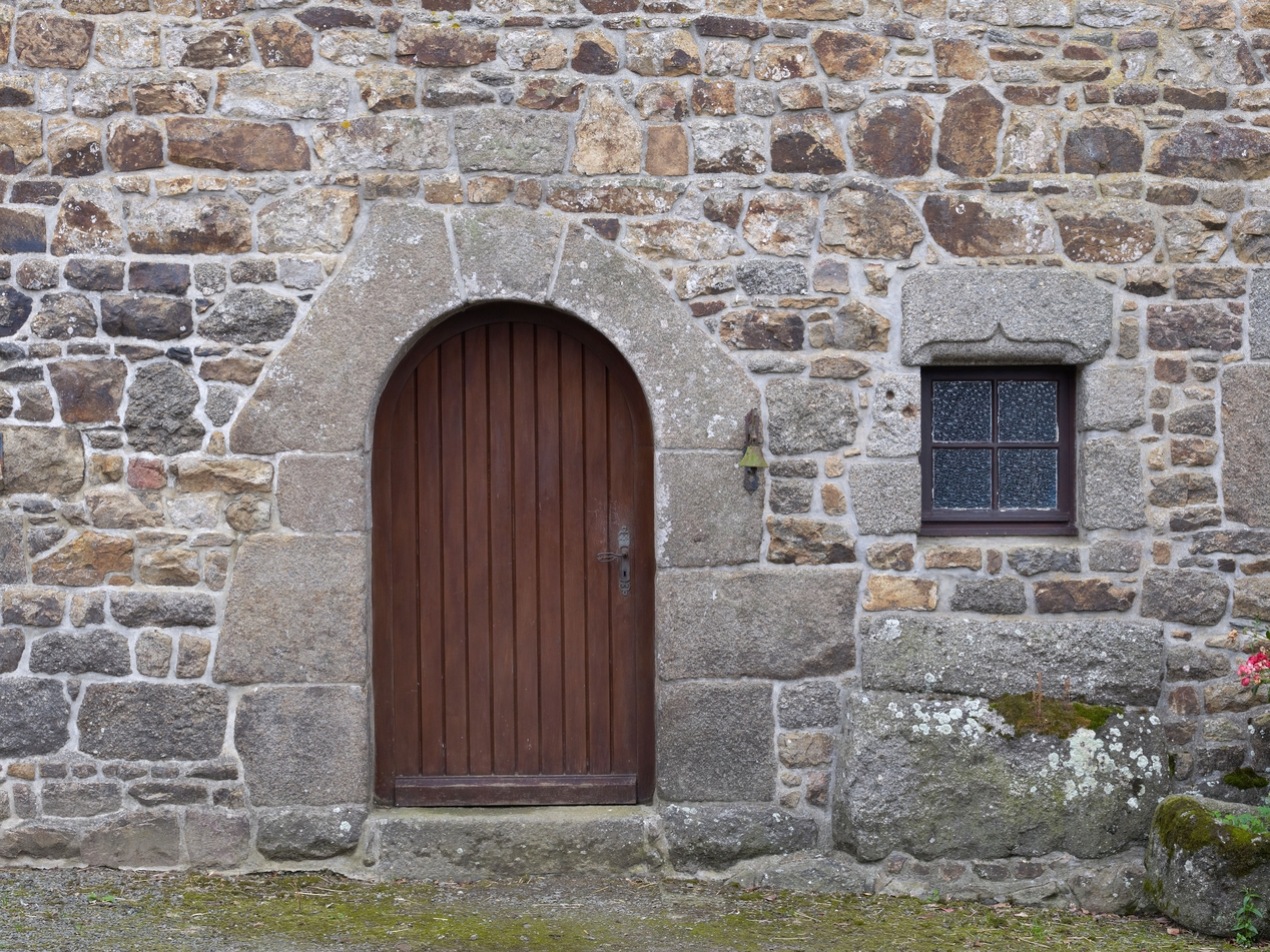 Prat, Goaz an Floc'h : porte en arc plein cintre et petite baie ornée d'une accolade (vraissemblamement à la place du jour du saloir)Immatriculation