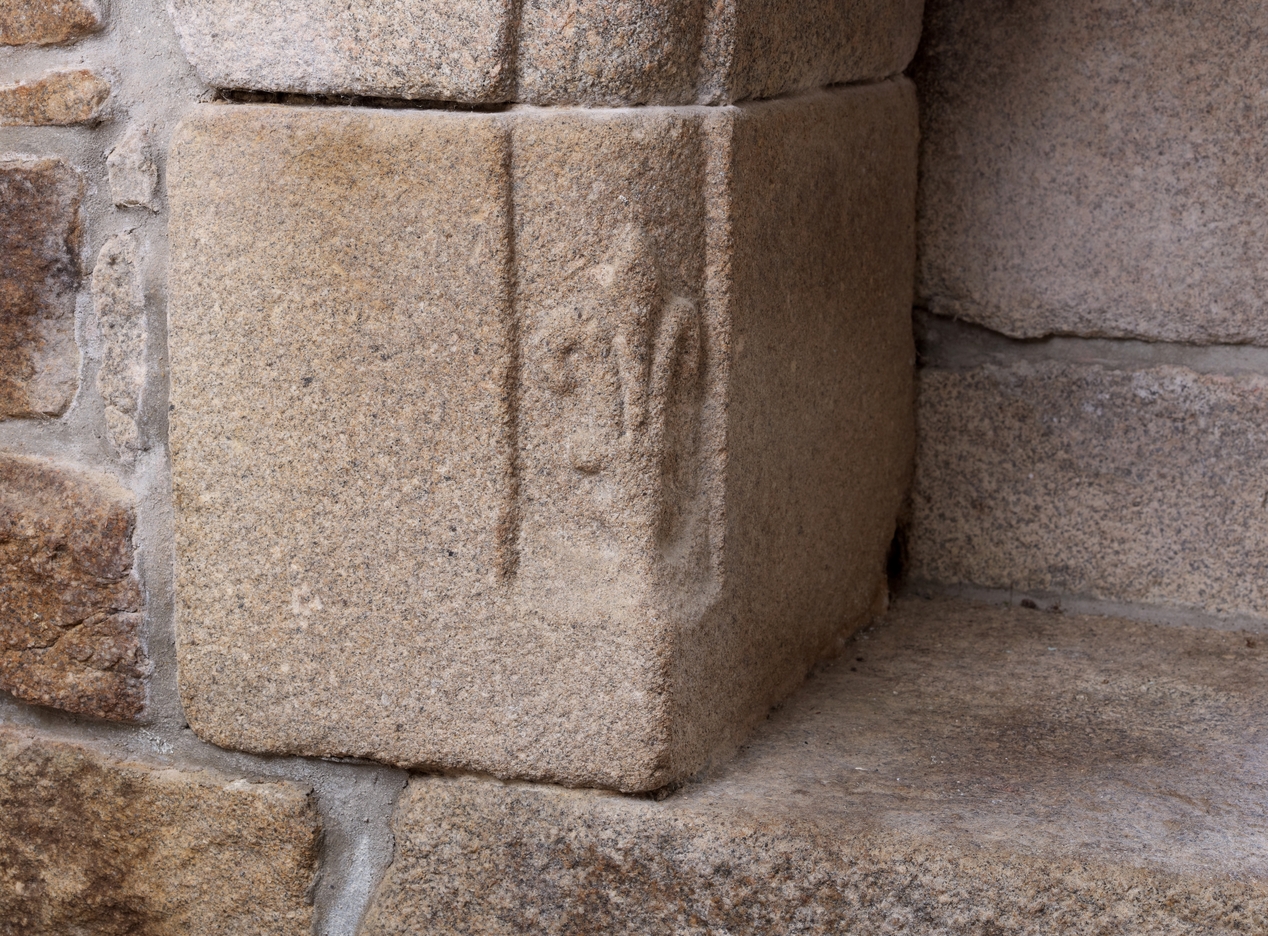 Ploubezre, Convenant Le Moal. Logis daté 1759. Rez-de-chaussée. Etagère murale. Détail de la base ornée d'une fleur de lysImmatriculation