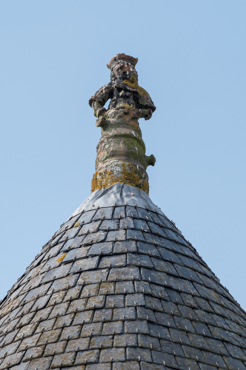Détail de l'épi siffleur représentatn un personnage (vue de face).Immatriculation