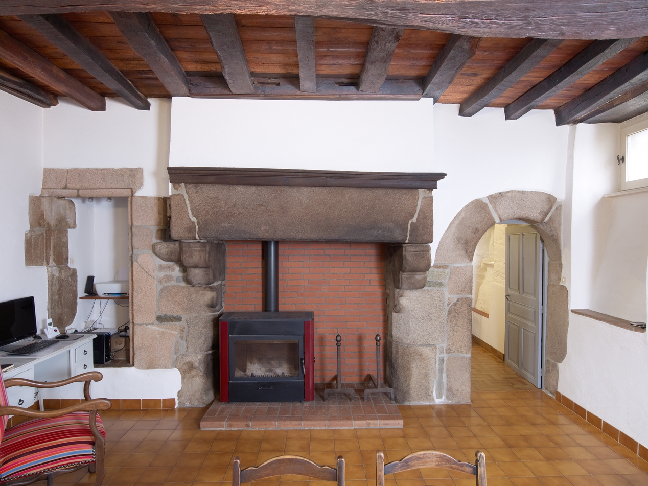 Rez-de-chaussée, cuisine (?) actuellement salle à manger, cheminée monumentale et portes percées dans le mur de refend (en arc plein cintre vers le cellier, à linteau droit vers une chambre située à l'étage via un escalier disparu ?)Immatriculation