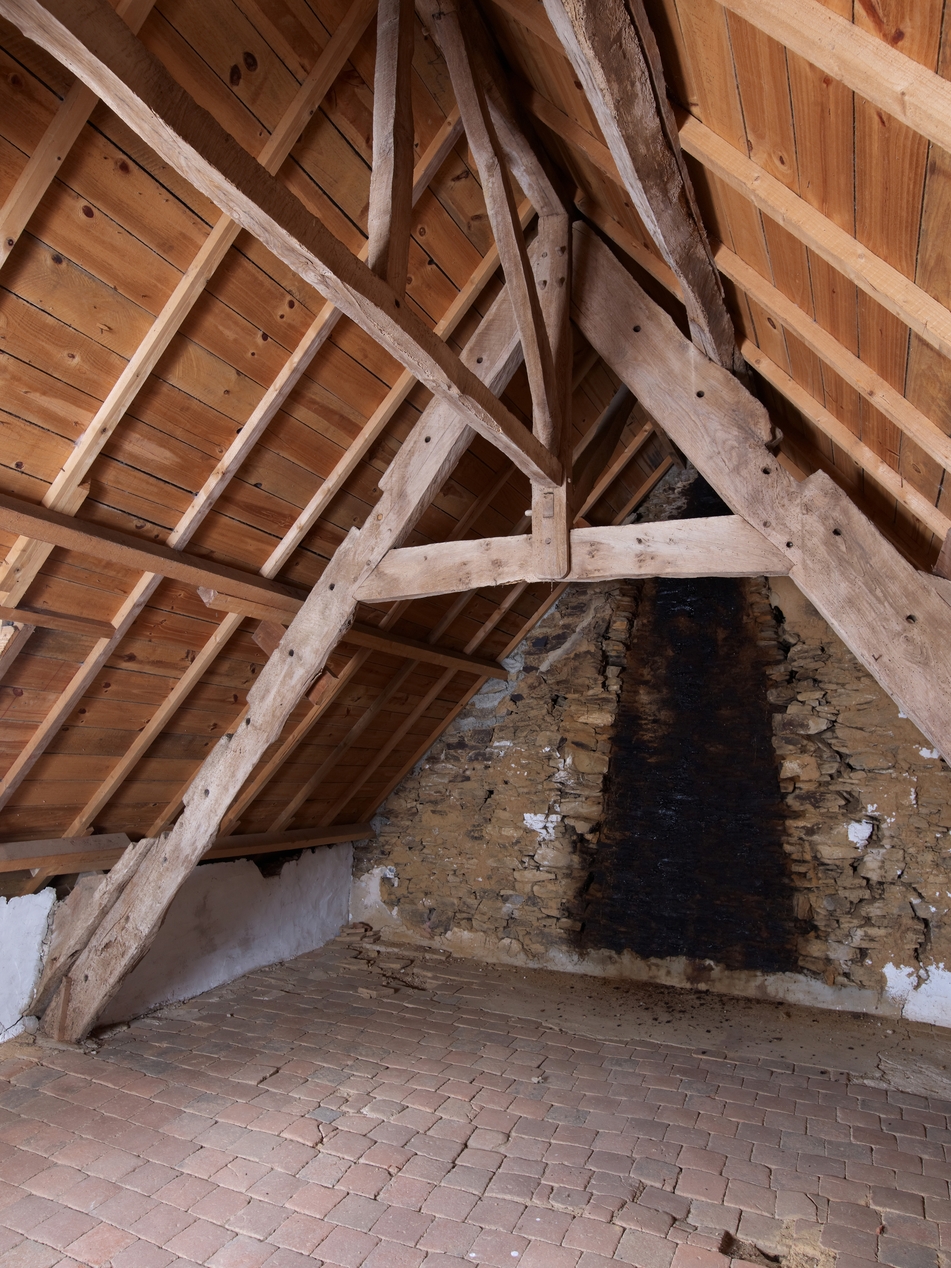 Etage de comble, sol couvert de tomettes et charpente. Sur le mur de refend, traces d'une ancienne hotte de cheminéeImmatriculation