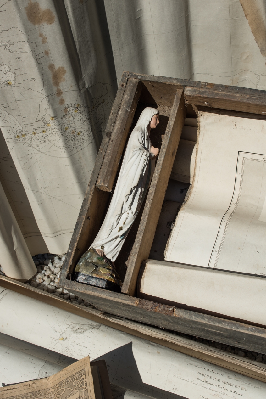 Malle du marin Augustin Hamoniaux, la statuette de la Vierge était placée dans une niche sur un des côtés de la malleImmatriculation