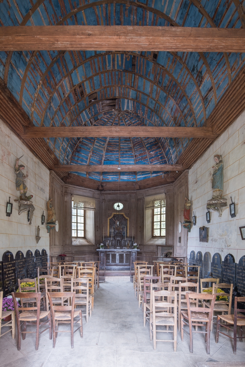 Vue générale de la chapelle de l'entrée vers le choeur.Immatriculation