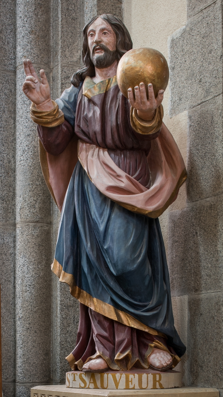 Statue en bois polychrome du saint patron de l'église : Saint-Sauveur.Immatriculation