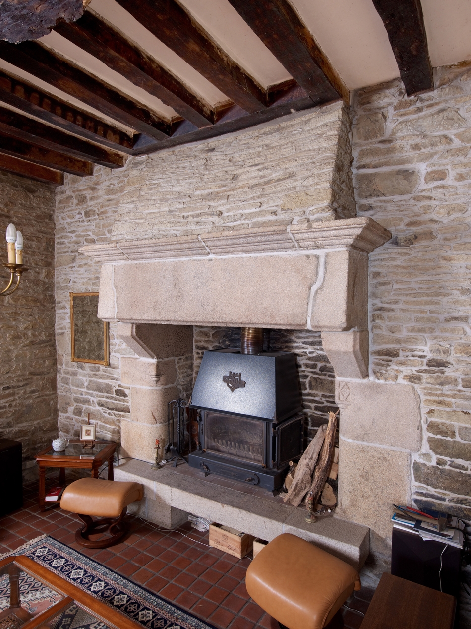 Minihy-Tréguier : manoir de Saint-Renaud, salle basse orientée nord-sud, détail de la cheminée engagée dans le pignon estImmatriculation