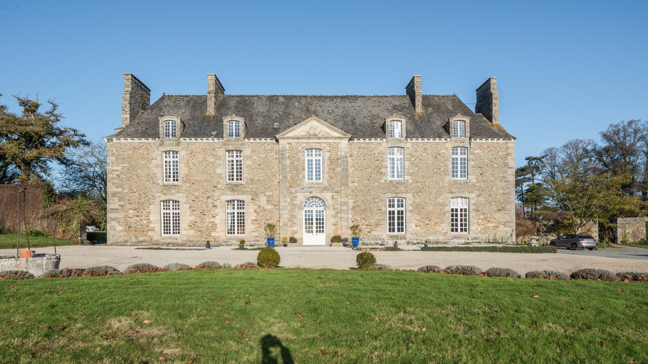 Vue générale de la façade principale du château de la Caunelaye.Immatriculation