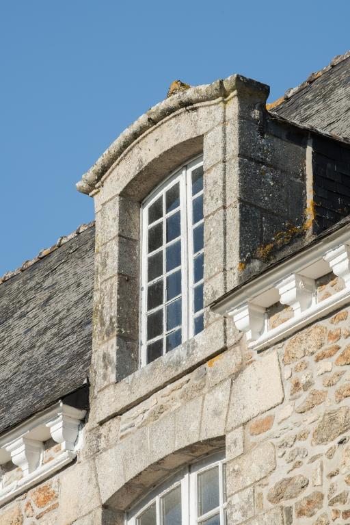Détails d'une lucarne décorée d'une mouluration en "chapeau de gendarme".Immatriculation