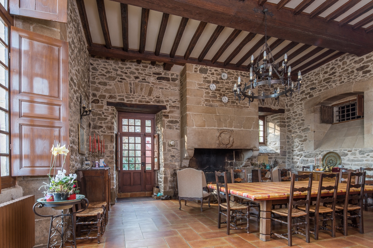 Salle à manger au rez-de-chaussée, ancienne salle de réception du manoir.Immatriculation