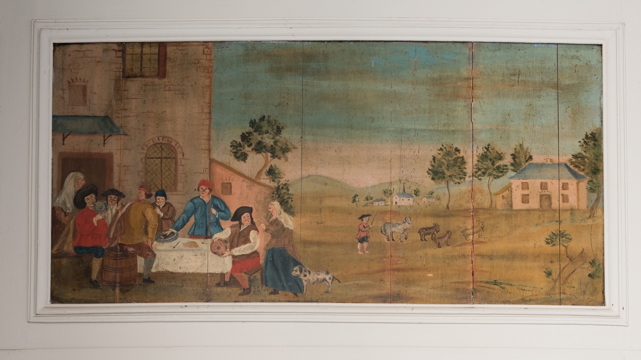 Détail du panneau peint au-dessus de l'entrée du salon vers l'entrée.Immatriculation
