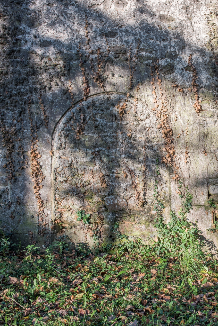 Porte condamnée de la façade sud de la chapelle de la Caunelaye.Immatriculation