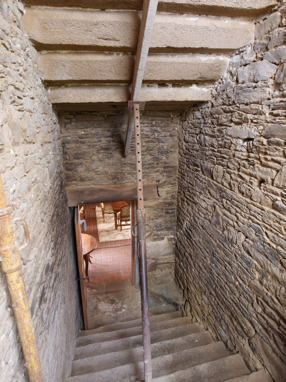 Minihy-Tréguier : manoir de Saint-Renaud, escalier rampe sur rampe, première volée de marchesImmatriculation