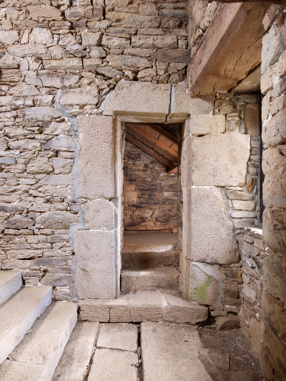 Minihy-Tréguier : manoir de Saint-Renaud, escalier rampe sur rampe, troisième repos ou palier, départ de la quatrième volée de marches. En face : porte donnant dans une petite pièce située au-dessus de l'appentisImmatriculation