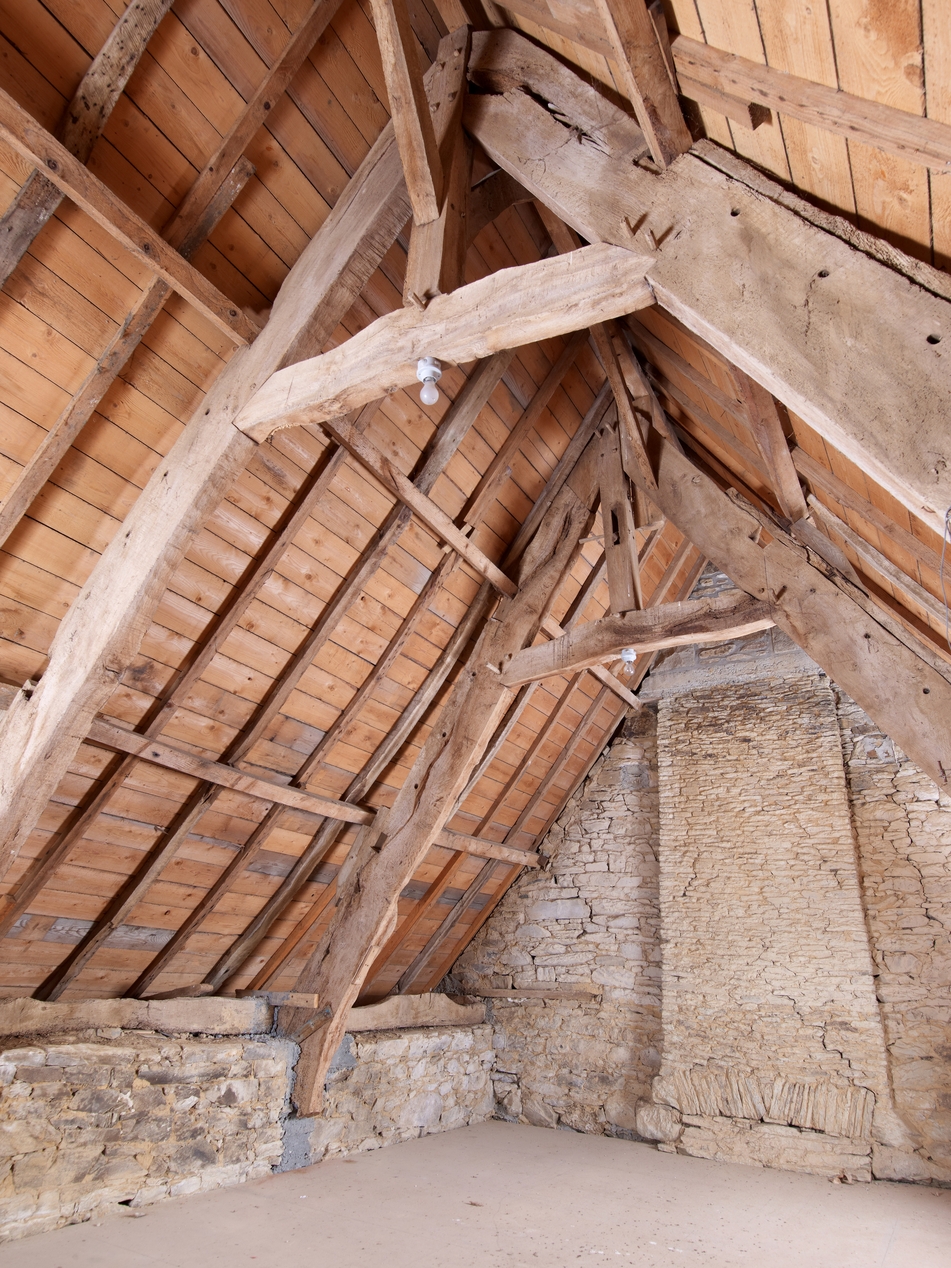 Minihy-Tréguier : manoir de Saint-Renaud, étage de comble, aile orientée vers le sud, vue générale de la charpenteImmatriculation