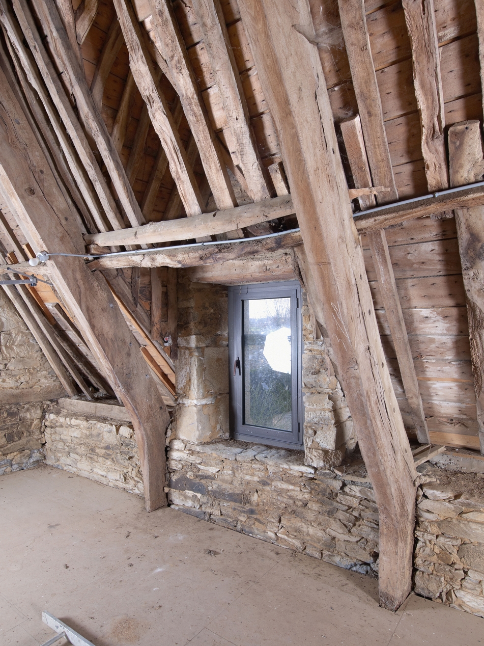Minihy-Tréguier : manoir de Saint-Renaud, aile orientée vers l'est, étage de comble, détail de la lucarneImmatriculation