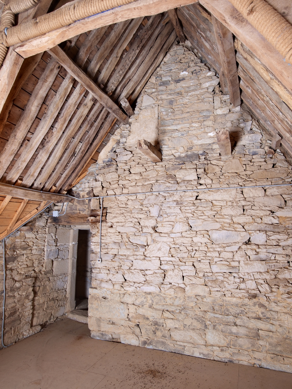 Minihy-Tréguier : manoir de Saint-Renaud, mur de refend situé entre l'aile est et l'escalier, détail de la face orientale, traces d'une ouverture dans le murImmatriculation