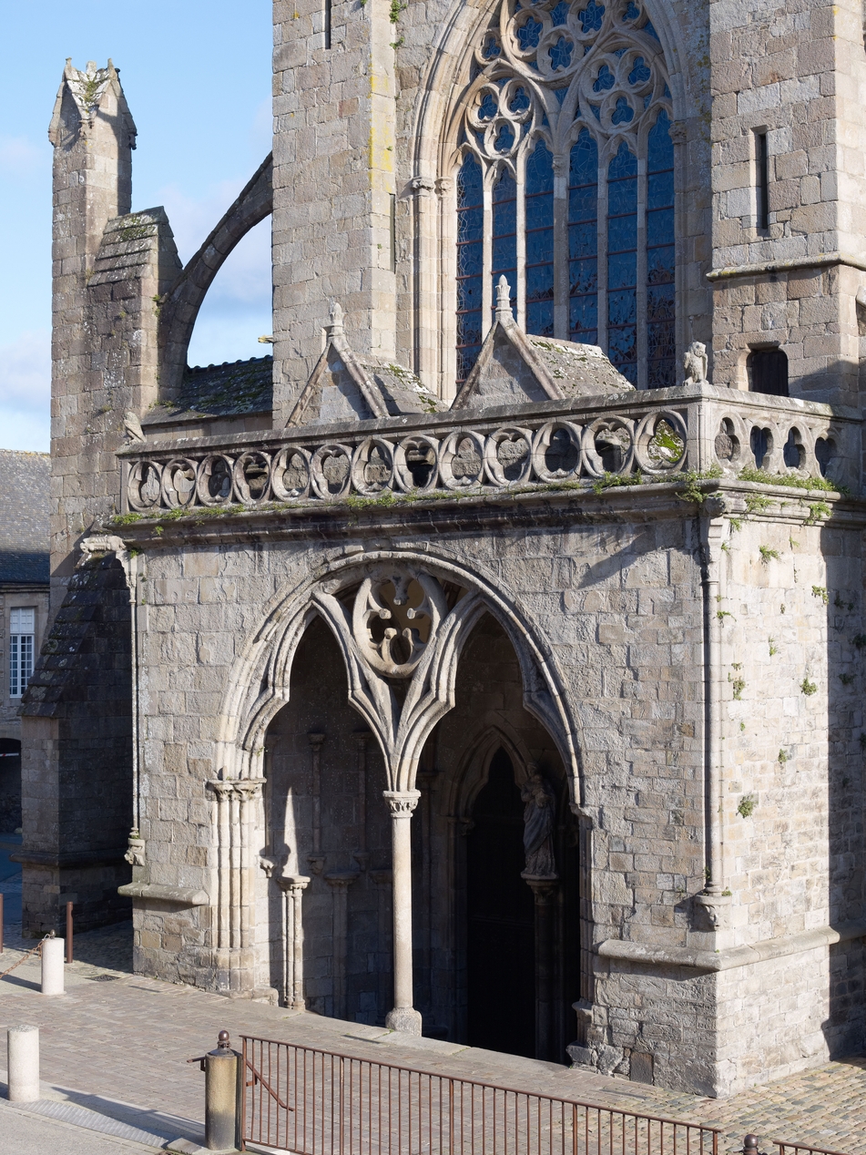 Façade et porche ouest (grande baie en plein cintre que recoupent deux arcatures à redents)Immatriculation