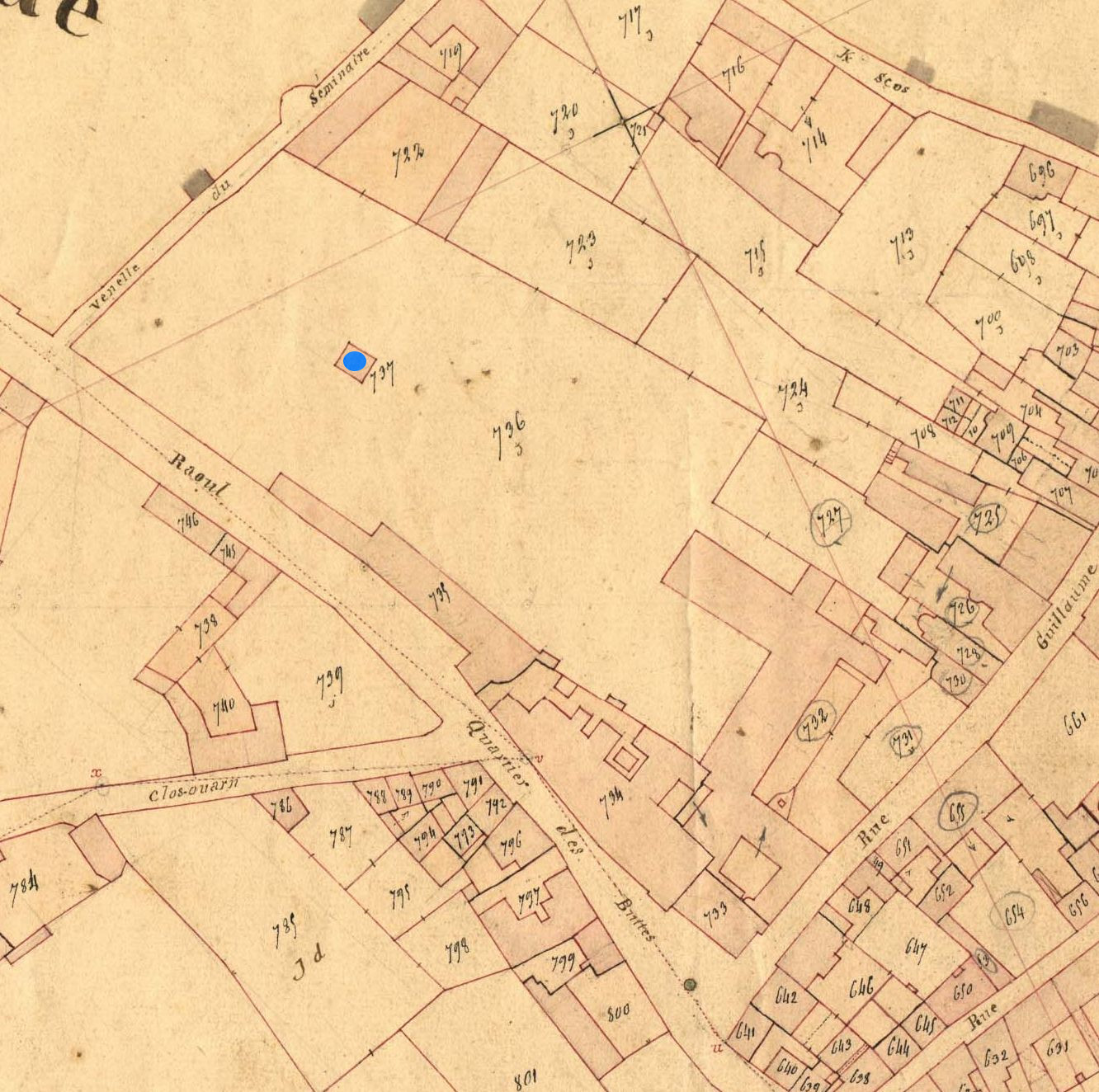 La chapelle Saint-Pierre en 1834. Extrait du cadastre ancien, section A2 (A.D. 22, série 3 P, 367/1)Immatriculation