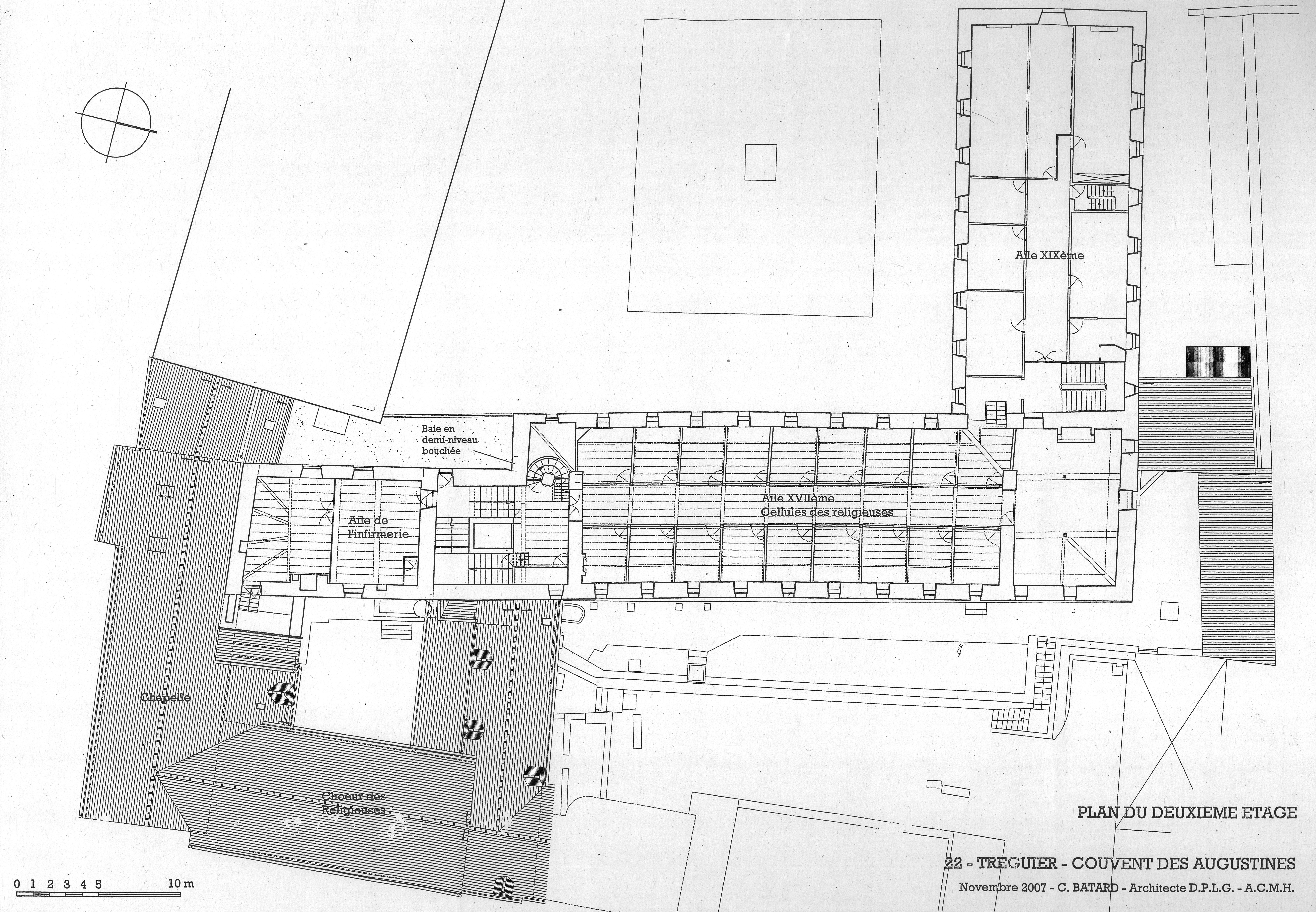 Plan du 2e étage du couvent des Augustines, novembre 2007, Christophe Batard, architecte en chef des Monuments historiquesImmatriculation