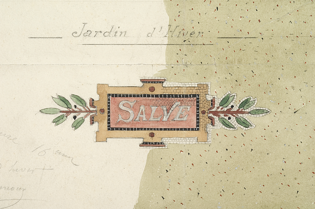 Dessin sur papier au crayon graphite et lavis. Projet de sol pour le jardin d'hiver. Création d'Isidore Odorico père, vers 1905 (collection du musée de Bretagne)Immatriculation