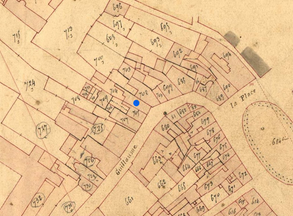 Le 14 rue de La Chalotais en 1834. Extrait du cadastre ancien, section A2 (A.D. 22, série 3P 367/1)Immatriculation