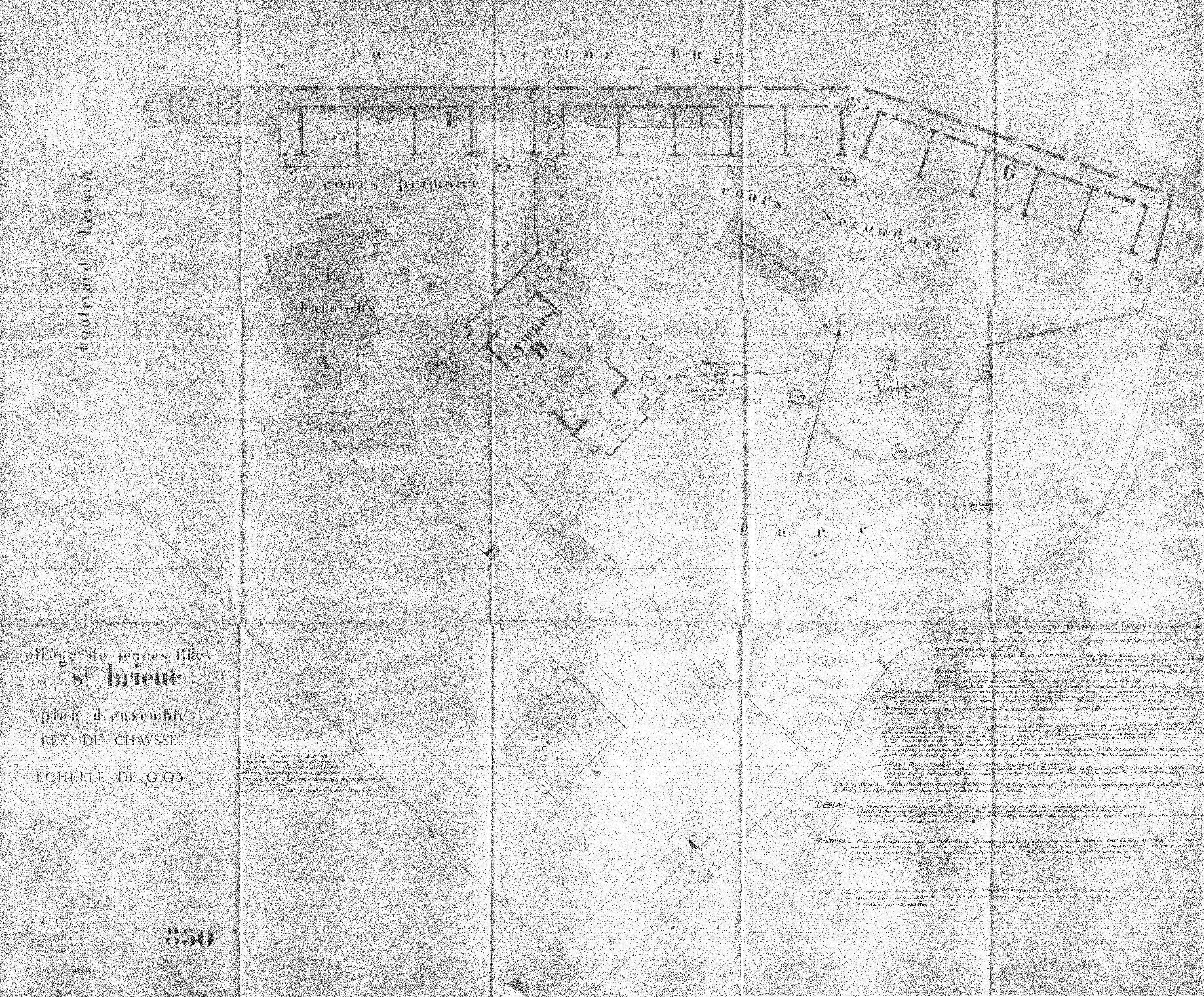 AD Côtes-d'Armor : 124 J 46. Plan d'ensemble : rez-de-chaussée. G.-R. Lefort, 1933-1939.