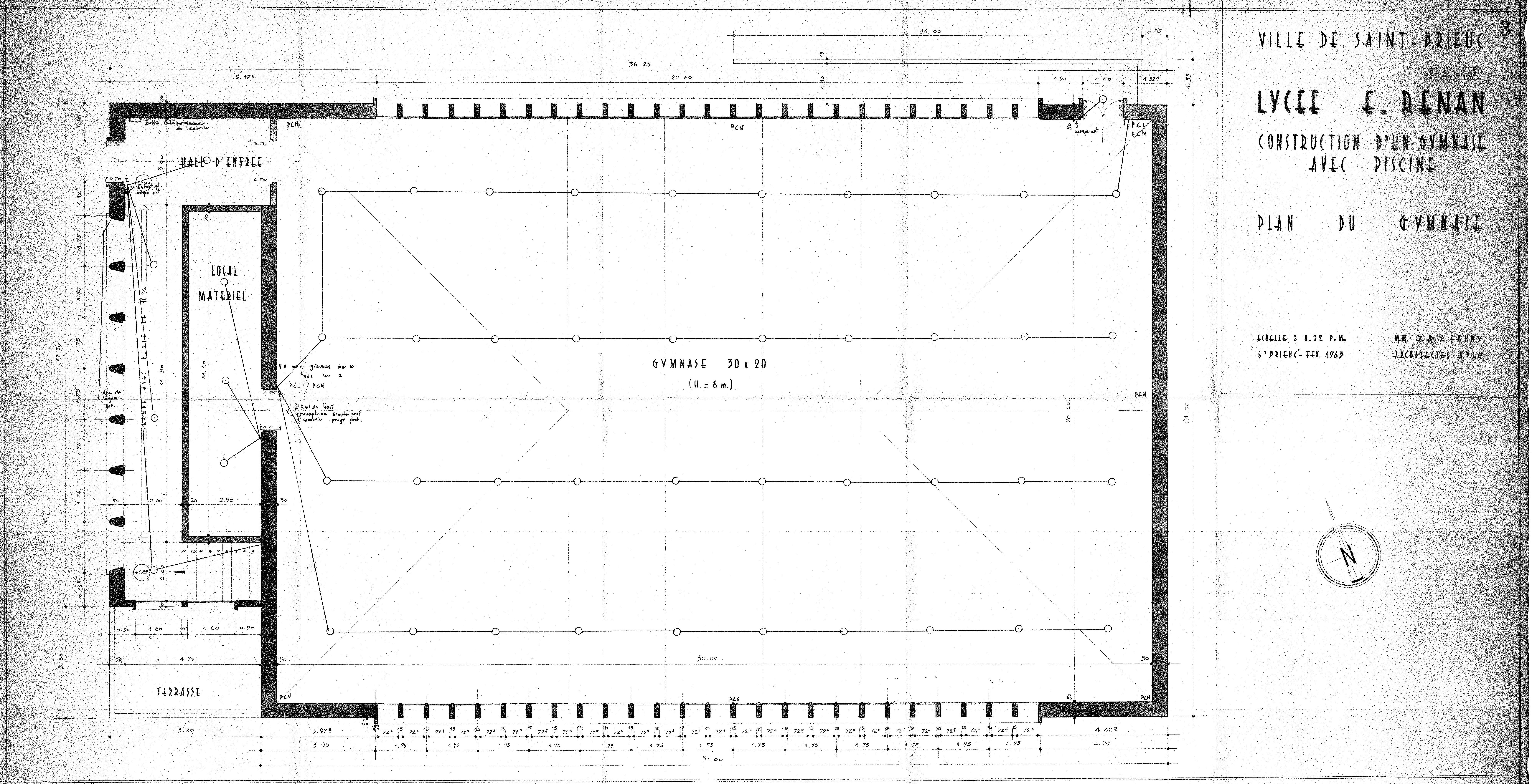 AD Côtes-d'Armor : 142 J 128. Grand gymnase : plan. J. & Y. Fauny, 1963.