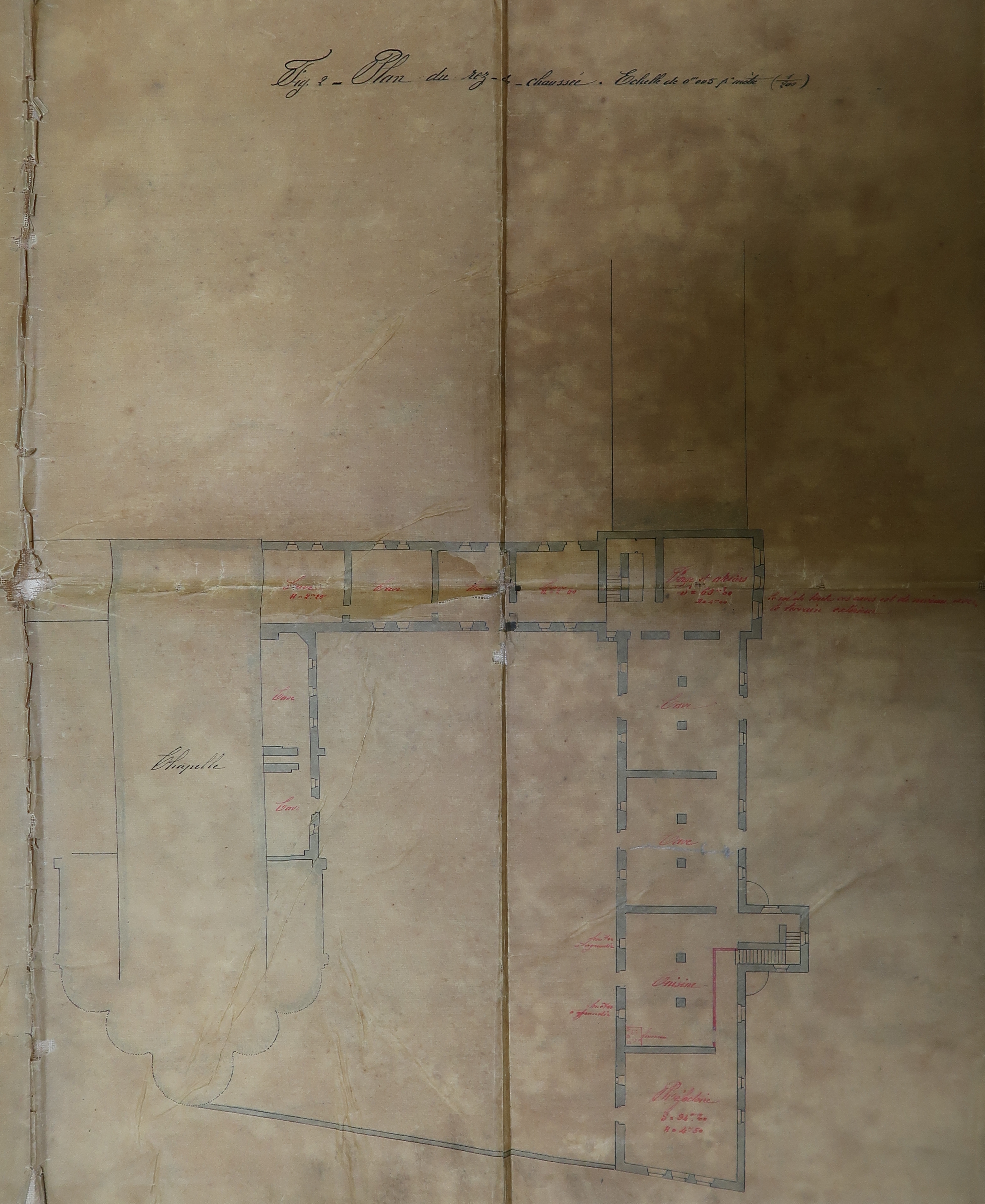 Tréguier : plan du projet de création de l'école primaire supérieure dans les locaux de l'ancien petit séminaire (plan du rez-de-chaussée), 12 février 1908 (Archives municipales de Tréguier, 4M2)Immatriculation