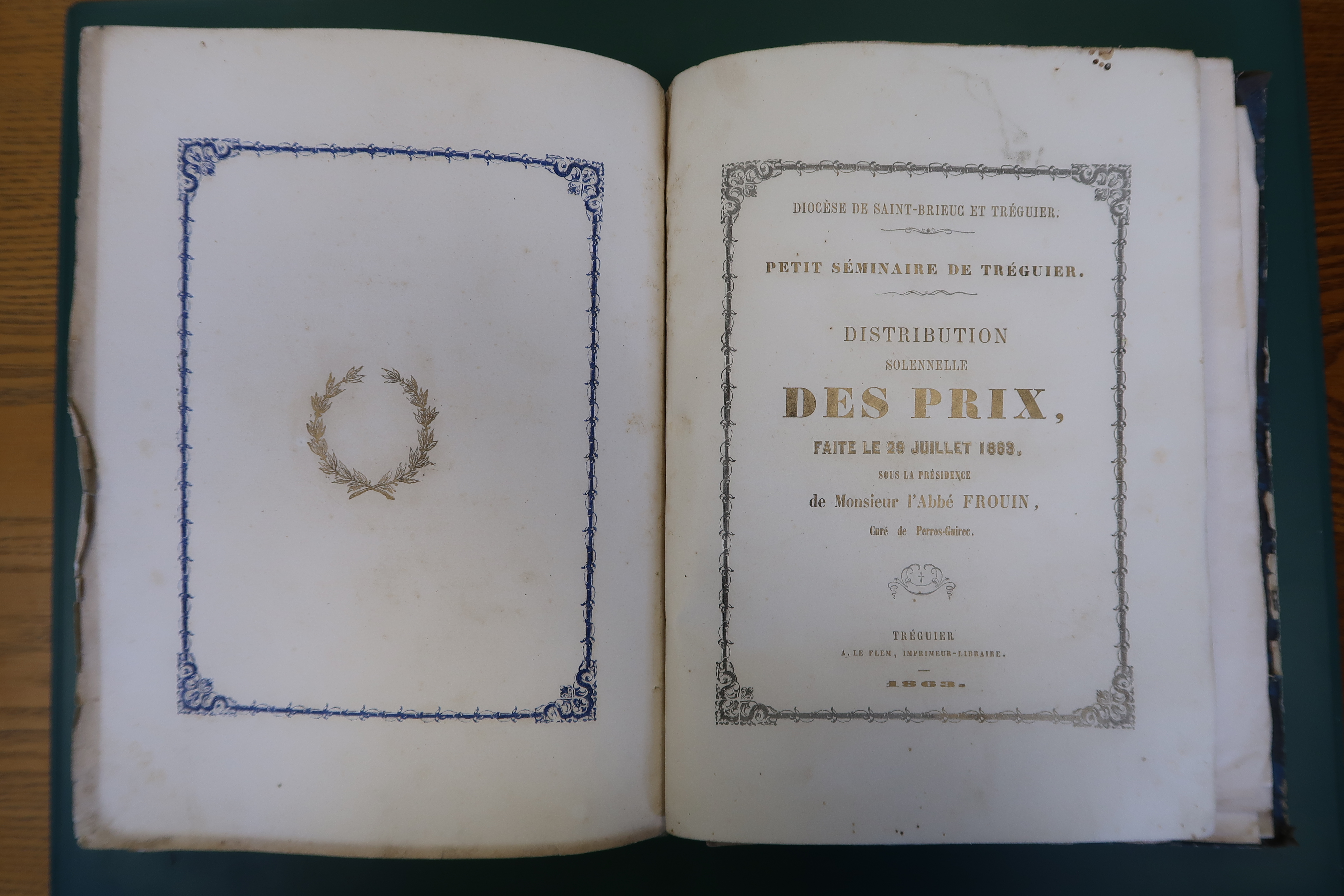 Tréguier : petit séminaire, distribution solennelle des prix, 1863 (Collection de la bibliothèque du collège Saint-Joseph de Lannion)Immatriculation