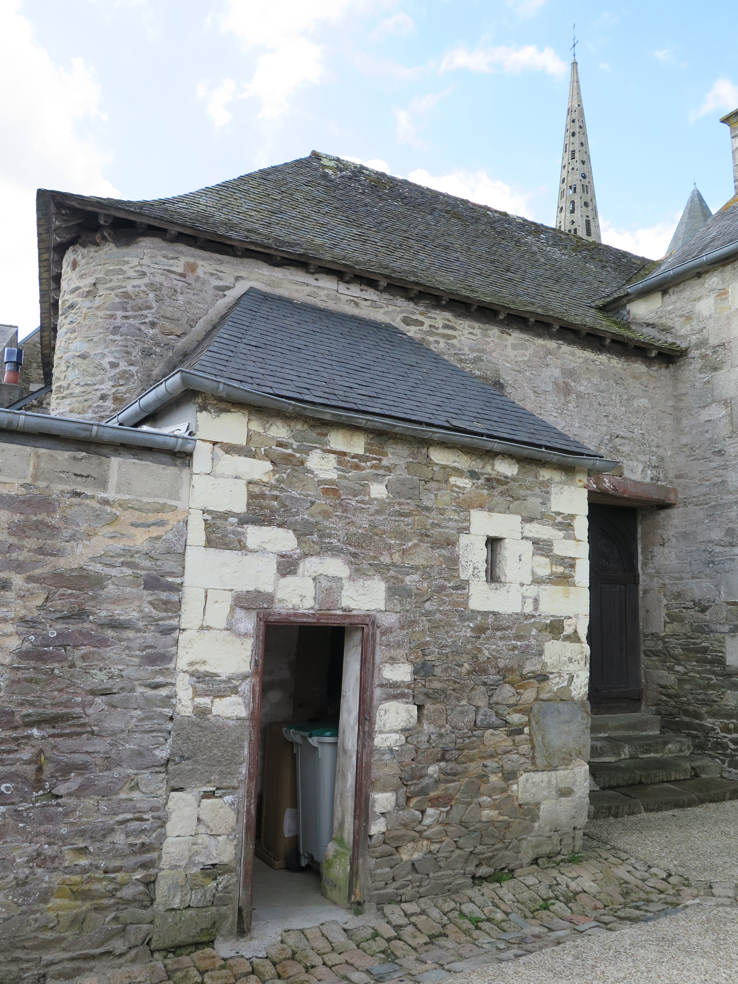 Tréguier : venelle du Cloître, petit pavillon nord du cloître à usage de latrines abritant une porte accessible du cloîtreImmatriculation