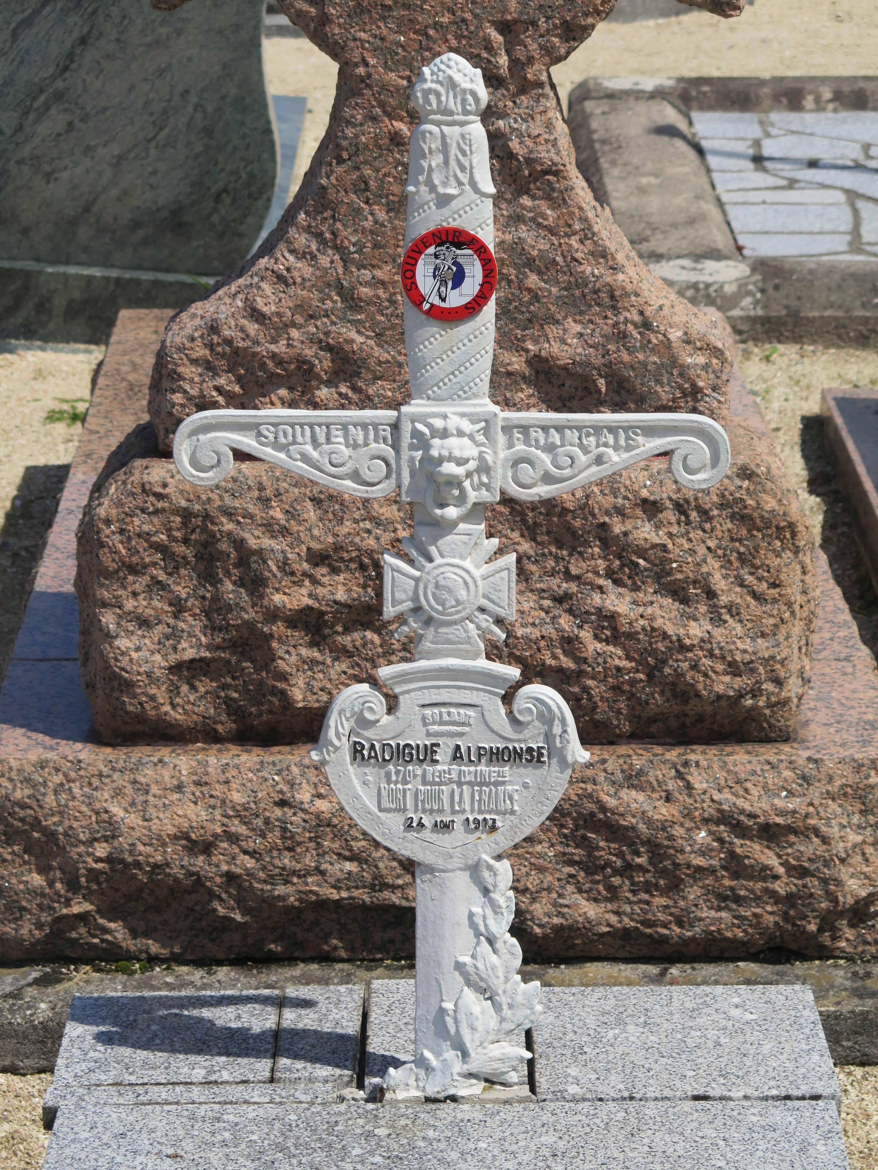 Tréguier : cimetière Saint-Fiacre, carré militaire français, tombe de Alphonse Radigue (170ème régiment d’infanterie, mort pour la France le 24 août 1915)Immatriculation