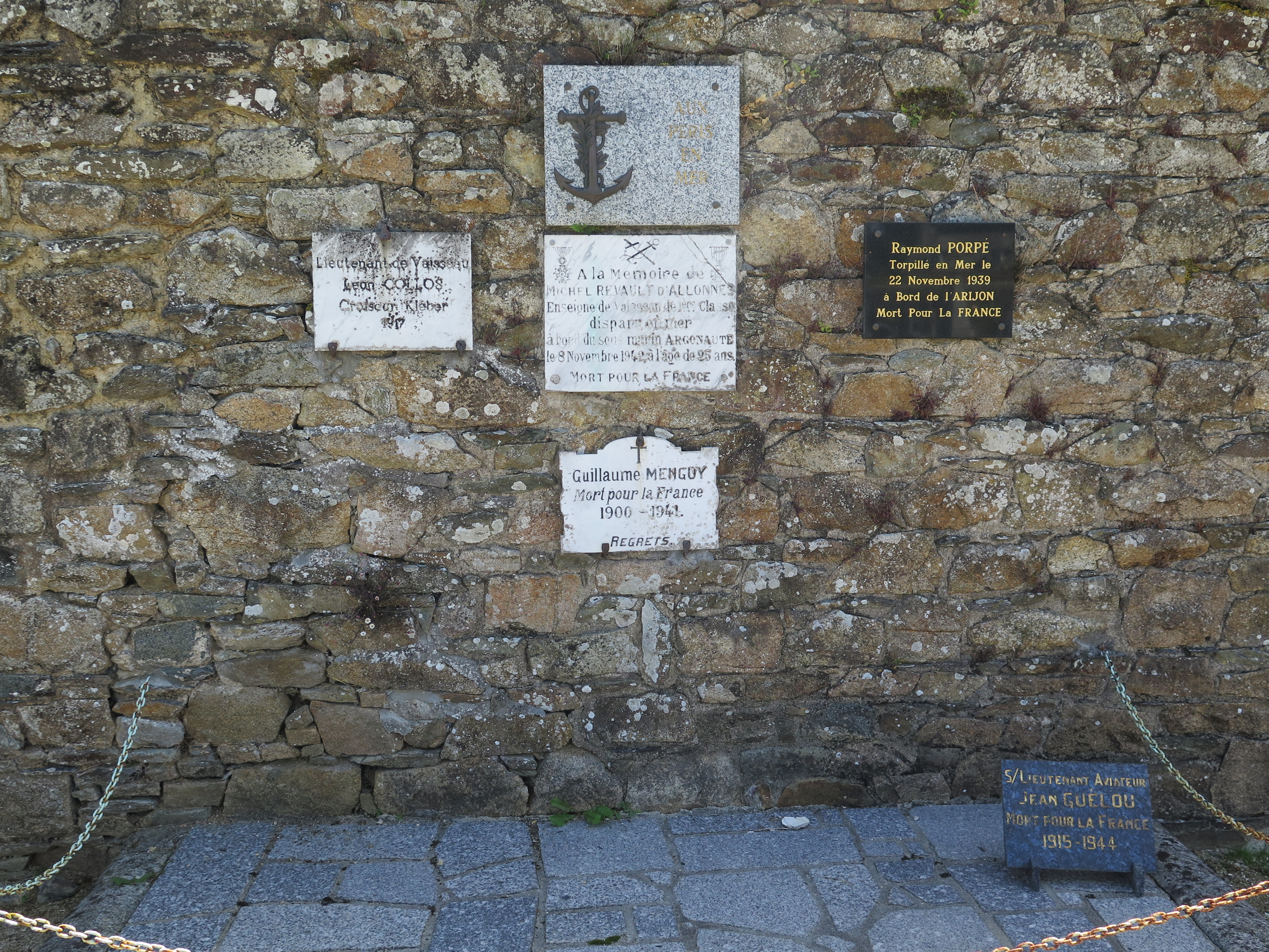 Tréguier : cimetière Saint-Fiacre, plaques commémoratives fixées sur le mur de clôtureImmatriculation